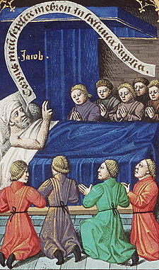 The Blessing of Jacob is a prophetic poem that appears in Genesis at 49:1–27 and mentions each of Jacob's twelve sons. Genesis presents the poem as the words of Jacob to his sons when Jacob is about to die.
