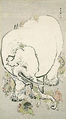 An alternate version of the parable describes sighted men, experiencing a large statue on a dark night, or feeling a large object while being blindfolded. They then describe what it is they have experienced. In its various versions, it is a parable that has crossed between many religious traditions and is part of Jain, Hindu and Buddhist texts of 1st millennium CE or before.[5][4] The story also appears in 2nd millennium Sufi and Baháʼí Faith lore. The tale later became well known in Europe, with 19th century American poet John Godfrey Saxe creating his own version as a poem, with a final verse that explains that the elephant is a metaphor for God, and the various blind men represent religions that disagree on something no one has fully experienced.[6] The story has been published in many books for adults and children, and interpreted in a variety of ways.