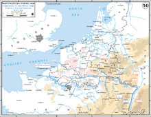 The concepts associated with the term blitzkrieg—deep penetrations by armour, large encirclements, and combined arms attacks—were largely dependent upon terrain and weather conditions. Where the ability for rapid movement across "tank country" was not possible, armoured penetrations often were avoided or resulted in failure. Terrain would ideally be flat, firm, unobstructed by natural barriers or fortifications, and interspersed with roads and railways. If it were instead hilly, wooded, marshy, or urban, armour would be vulnerable to infantry in close-quarters combat and unable to break out at full speed. Additionally, units could be halted by mud (thawing along the Eastern Front regularly slowed both sides) or extreme snow. Operation Barbarossa helped confirm that armour effectiveness and the requisite aerial support were dependent on weather and terrain.[70] It should however be noted that the disadvantages of terrain could be nullified if surprise was achieved over the enemy by an attack through areas considered natural obstacles, as occurred during the Battle of France when the German blitzkrieg-style attack went through the Ardennes.[71] Since the French thought the Ardennes unsuitable for massive troop movement, particularly for tanks, they were left with only light defences which were quickly overrun by the Wehrmacht. The Germans quickly advanced through the forest, knocking down the trees the French thought would impede this tactic.[72]