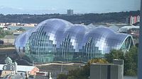 The term, especially in popular parlance, has come to be associated quite widely with odd-looking buildings including Frank Gehry's Guggenheim Museum Bilbao (1997) and the Experience Music Project (2000).[11] These, in the narrower sense, are not blob buildings, even though they were designed by advanced computer-aided design tools, CATIA in particular.[12] The reason for this is that they were designed from physical models rather than from computer manipulations. The first full blob building, however, was built in the Netherlands by Lars Spuybroek (NOX) and Kas Oosterhuis. Called the Water Pavilion (1993–1997), it has a fully computer-based shape manufactured with computer-aided tools and an electronic interactive interior where sound and light can be transformed by the visitor.