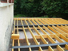 Blocking (in American English) is the use of short pieces (blocks) of dimensional lumber in wood framed construction. Uses include filling, spacing, joining, or reinforcing members.[1] Blocking is typically made from short off-cuts or defective, warped pieces of lumber. Names for similar materials in other forms of English include dwang, nog, noggin, and nogging.