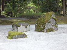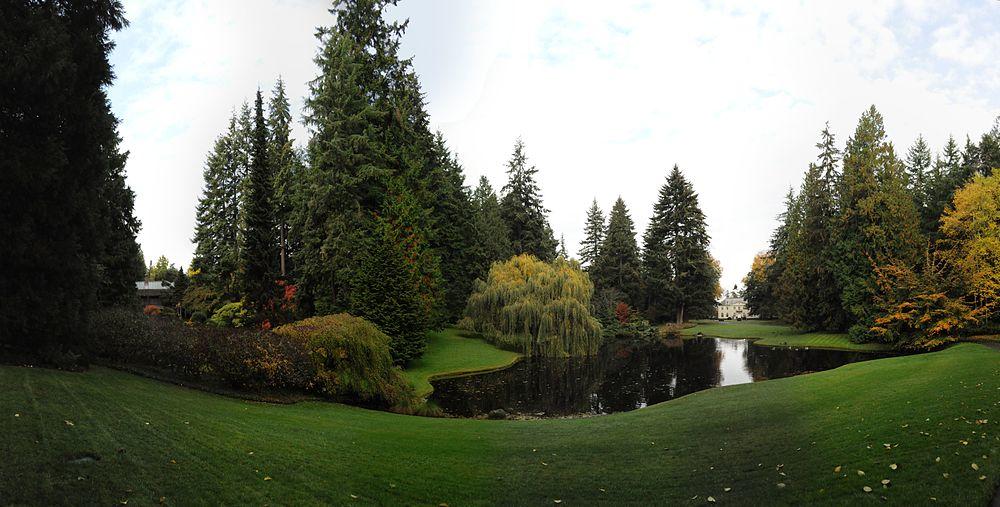 The Bloedel Reserve is a 150-acre (0.6 km2) forest garden on Bainbridge Island, Washington, United States. It was created by Virginia and Prentice Bloedel, the vice-chairman of the lumber company MacMillan Bloedel Limited, under the influence of the conservation movement and Asian philosophy. The couple wished to 'capture the essence of the Japanese garden - the qualities of naturalness, subtlety, reverence, tranquility - and construct a Western expression of it'. Although the Reserve includes a traditional Japanese garden, the Bloedels' approach for the rest of the property stands in contrast to that of 'Japanese gardens' which achieve their effects through the use of ornament. The Bloedel Reserve has both natural and highly landscaped lakes, immaculate lawns, woods, a stone garden[1] (formerly the swimming pool where poet Theodore Roethke drowned in 1963), a moss garden, a rhododendron glen, and a reflection garden designed with the assistance of landscape architects Richard Haag, Thomas Church, Kazimir Wall, and Danielle Stern. The Bloedels' French Chateau-style home, including many original furnishings, is preserved as a visitor center.[2]