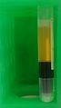 Left tube: after standing, the RBCs have settled at the bottom of the tube.