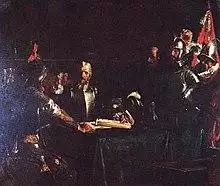 A famous example of the blood compact was the 1565 Sandugo between Spanish explorer Miguel López de Legazpi and Datu Sikatuna, the chieftain of Bohol. Another blood compact was done between the Portuguese explorer Ferdinand Magellan and Rajah Humabon of Cebu.[1]