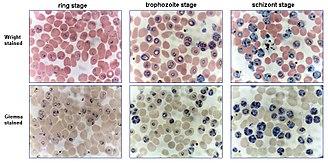 - ^ Warhurst DC, Williams JE (1996). "Laboratory diagnosis of malaria". J Clin Pathol. 49 (7): 533–38. doi:10.1136/jcp.49.7.533. PMC 500564. PMID 8813948.