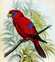 The blue-eared lory (Eos semilarvata) (also known as Ceram lory, half-masked lory or Seram lory) is a parrot found only on the island of Seram in Maluku province, Indonesia.