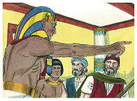 Reading in Exodus 10:7 that "Pharaoh's servants said to him: ‘How long shall this man be a snare unto us?'" the Sages counted Pharaoh's servants among six exemplars who gave good advice, along with Naaman's servants, King Saul's ministers, the ministers of the King of Aram, and the ministers of King Ahasuerus.[87]
