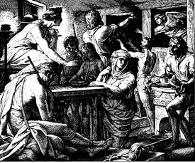 It was taught in a Baraita that Rabbi Judah the Prince (or others say Rabbi Meir) used to say that Providence repays a person measure for measure.[83] Thus, a Midrash taught that God sent the plagues against Pharaoh measure for measure. God changed the Egyptians' water into blood because the Egyptians prevented the Israelites from using the ritual bath (mikveh) so as to prevent the Israelite women from having marital relations with their husbands. God brought frogs because the Egyptians had ordered the Israelites to bring them reptiles and creeping creatures (which were an abomination to the Israelites). God sent lice because the Egyptians had made the Israelites clean the dirty streets and marketplaces. God sent swarms of wild animals because the Egyptians had demanded that the Israelites catch bears, lions, and leopards so as to separate the Israelite men from their wives. God brought the pestilence upon the Egyptians' cattle because they had forced the Israelites to serve as shepherds so as to keep the Israelite men away from their wives. God sent boils because the Egyptians had demanded that the Israelites warm things for them. God sent hail to destroy the Egyptians' crops because the Egyptians had sent the Israelites into the fields to plow and sow. God brought the locusts to destroy the Egyptians' grain because the Egyptians had forced the Israelites to plant wheat and barley for them. God brought darkness because among the Israelites were transgressors who had Egyptian patrons and lived in affluence and honor in Egypt and did not want to leave Egypt, and so God brought darkness so that God could kill these transgressors without the Egyptians' seeing.[84]