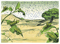 A Midrash taught that God brought the locusts upon the Egyptians in Exodus 10:1–20 because the Egyptians had made the Israelites sow wheat and barley for them, and thus God brought locusts to devour what the Israelites had sown for them.[85]
