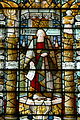 Hiram the Architect, in Freemasonry known as Hiram Abiff, flanked by the pillars. Stained glass window, St John's Church, Chester, 20th century