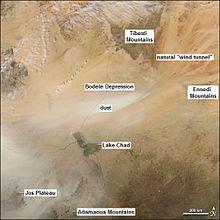 - ^ "Dust in the Bodélé Depression". Natural Hazards, Earth Observatory, NASA. URL accessed 2006-12-29.