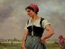 In the 19th century, in parts of Europe, styles reflected local folk dress, so that the bodice in France was frilled, in Austria took the form of the dirndl, and in Bulgaria, it had a gold stomacher.[1] Other styles seen in the 19th century include:[1]