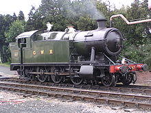 - 6435 – a GWR 6400 Class 0-6-0PT, another pannier tank, this class was fitted with equipment for working auto trains between Plymouth and Saltash. 6435 emerged from Swindon railway works for the first time in April 1937 and spent many years in Wales. It was condemned on 12 October 1964 and entered preservation with the Dart Valley Railway on 17 October 1965.[1] Its boiler certificate expires in 2022 but is currently (2016) operational and in British Railways lined green livery.