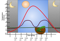 In essence, the temperature curve of diurnal birds is similar to that of man and other homoeothermal animals, except that the maximum occurs earlier in the afternoon and the minimum earlier in the morning. Also, the curves obtained from rabbits, guinea pigs, and dogs were quite similar to those from man.[8] These observations indicate that body temperature is partially regulated by circadian rhythms.