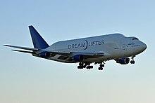 The 747-400 Dreamlifter[193] (originally called the 747 Large Cargo Freighter or LCF[194]) is a Boeing-designed modification of existing 747-400s to a larger configuration to ferry 787 Dreamliner sub-assemblies. Evergreen Aviation Technologies Corporation of Taiwan was contracted to complete modifications of 747-400s into Dreamlifters in Taoyuan. The aircraft flew for the first time on September 9, 2006 in a test flight.[195] Modification of four aircraft was completed by February 2010.[196] The Dreamlifters have been placed into service transporting sub-assemblies for the 787 program to the Boeing plant in Everett, Washington, for final assembly.[193] The aircraft is certified to carry only essential crew and not passengers.[197]