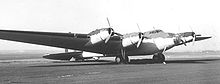 The specification that produced the XB-15 began in mid-1933 as "Project A", USAAC discussions regarding the possibility of flying a very large bomber with a range of 5,000 mi (8,000 km).[2] In April 1934 the USAAC contracted with Boeing and Martin to design a bomber capable of carrying 2,000 lb (910 kg) at 200 mph (320 km/h) over a distance of 5,000 miles.[3] Boeing gave the project the internal name of Model 294, while the USAAC called it the XB-15. Martin's design, the XB-16, was judged inferior by the USAAC before a prototype was built, and was canceled.[2]