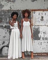 In 2008 fashion consultant Gok Wan cited a broderie anglaise top worn by Nadine Coyle of the group Girls Aloud as evidence that "the folk/boho look is so hot for summer",[30] while Marks & Spencer employed the headline "Bohemian Rhapsody" to summarise its summer range, which owed much to the colours and patterns of the early 1970s.[31] At the beginning of June that year fashion writer Carrie Gorman announced that "this week, shopping is about going bright and bold with a boho feel", citing, among other trends, multi-coloured tank tops ("or dress, according to your height") by Harlow, said to be the favorite label of American actress Rachel Bilson.[32] Bilson has cited Kate Moss and actress Diane Keaton as among her stylistic influences;[33] striped multi-colored panties with brodierie edging were a feature of her photographic shoot for Stuff magazine in 2004.[34]