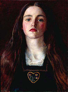 In 2009 the rise of British singer Florence Welch (as Florence + the Machine) coincided with the publication of Franny Moyle's study of the private lives of the Pre-Raphaelite Brotherhood of the mid-19th century (Desperate Romantics, 2009) and its dramatisation by BBC television. Welch has cited as her stylistic icons singer Marianne Faithfull, who had been closely associated with the Rolling Stones in the 1960s,[67] and her former English teacher who used to "come to school in crushed-velvet gowns like a medieval maiden[68] However, her stage image called to mind the pre-Raphaelite muses[69] who, in certain respects, had anticipated the hippie styles of a century later.[70] Indeed, Welch herself declared her attraction to "doomed romantic heroines, like Tennyson's [poem] The Lady of Shalott"[71] The cover of Welch's second album Ceremonials (2011) drew very clearly on later Pre-Raphaelite images.[72]