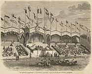 At the south end of the park, in the Plain of Longchamp, Davioud restored the ruined windmill which was the surviving vestige of the Abbey of Longchamp, and, working with the Jockey Club of Paris, constructed the grandstands of the Hippodrome of Longchamp, which opened in 1857.