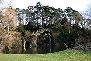 - The Grand Cascade (1856) was built out of four thousand cubic meters of rocks from Fontainebleau, and two thousand cubic meters of cement. In addition to the picturesque waterfall, it has two artificial grottoes, one over the other, which can be visited.