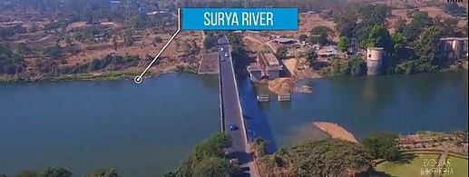 The two main rivers flowing through the city are the Surya and the Banganga (which has Betegaon Railway Bridge). Many small creeks are found all along the western coast villages like Kolwade, Kumbhavali, and Murbe where tidal waters flood upstream. There are dams such as the Surya Dam and the Devkhop dam.