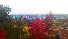 The Boise City–Nampa, Idaho Metropolitan Statistical Area (MSA) (commonly known as the Boise Metropolitan Area or the Treasure Valley) is an area that encompasses Ada, Boise, Canyon, Gem, and Owyhee counties in southwestern Idaho.[2] It is distinct from the wider Boise City–Mountain Home–Ontario, ID–OR Combined Statistical Area, an area consisting of seven counties in southwestern Idaho, and Malheur County, Oregon anchored by the cities of Boise and Nampa. It is the state's largest officially designated metropolitan area and includes Idaho's three largest cities – Boise, Nampa, and Meridian. Nearly 40 percent of Idaho's total population lives in the area.