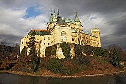Bojnice (German: Weinitz; Hungarian: Bajmóc) is a historical town in central Slovakia at the upper Nitra river, near the city of Prievidza. It has a population of around 5,000. Bojnice is best known for its tourist attractions: the oldest zoo in Slovakia, the most visited castle, and one of the oldest spa towns in Slovakia. The town is situated below the Bojnice Castle, which is built on travertine rock with a natural cave. The castle has appeared in many international films and a well-known international festival of spectres takes place there every year.