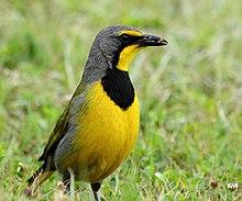 The bokmakierie (Telophorus zeylonus) is a bushshrike. This family of passerine birds is closely related to the true shrikes in the family Laniidae, and was once included in that group. This species is endemic to southern Africa, mainly in South Africa and Namibia, with an isolated population in the mountains of eastern Zimbabwe and western Mozambique.