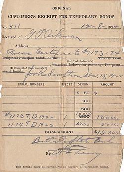 - Bearer bond is an official certificate issued without a named holder. In other words, the person who has the paper certificate can claim the value of the bond. Often they are registered by a number to prevent counterfeiting, but may be traded like cash. Bearer bonds are very risky because they can be lost or stolen. Especially after federal income tax began in the United States, bearer bonds were seen as an opportunity to conceal income or assets.[10] U.S. corporations stopped issuing bearer bonds in the 1960s, the U.S. Treasury stopped in 1982, and state and local tax-exempt bearer bonds were prohibited in 1983.[11]