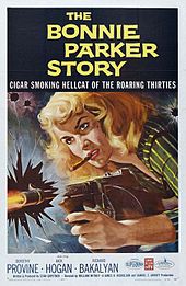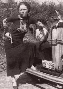 Bonnie Elizabeth Parker (October 1, 1910 – May 23, 1934) was born in Rowena, Texas, the second of three children. Her father, Charles Parker, a bricklayer, died when Bonnie was four.[7] Her mother, Emma Krause, moved with the children to her parents' home in Cement City, an industrial suburb of Dallas, where she found work as a seamstress.[8] Her maternal grandfather, Frank Krause, comes from Germany.[9] Parker was one of the best students in her high school, winning top prizes in spelling, writing, and public speaking.[10][11] As an adult, her fondness for writing found expression in poems such as "The Story of Suicide Sal"[12] and "The Trail's End" (known since as "The Story of Bonnie and Clyde"[13]).