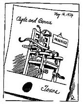 The Dallas Journal ran a cartoon on its editorial page showing the Texas electric chair, empty, but with a sign on it saying "Reserved"—for Clyde and Bonnie.[105]
