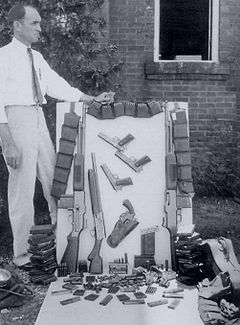- ^ Hamer was interested in the Barrow hunt assignment, but the pay was only a third of what he made working for oil companies. To sweeten the deal, TDOC boss Lee Simmons granted Hamer title to all the stolen guns the posse would recover from the slain outlaws. Almost all the guns were the former property of the National Guard, pilfered from their armories during overnight burglaries. There was a thriving market for "celebrity" guns, even in 1934. Guinn, p 343