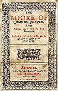 Many ordinary churchgoers—that is those who could afford a copy as it was expensive—would own a copy of the prayer book. Judith Maltby cites a story of parishioners at Flixton in Suffolk who brought their own prayer books to church in order to shame their vicar into conforming with it: they eventually ousted him.[59] Between 1549 and 1642, roughly 290 editions of the prayer book were produced.[60] Before the end of the English Civil War (1642-1651) and the introduction of the 1662 prayer book, something like a half a million prayer books are estimated to have been in circulation.[60]