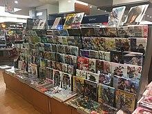 Since 2000, Kinokuniya in the US has capitalised on the growing popularity of Japanese TV / anime by stocking both English- and Japanese-language books and manga, as well as other Japanese TV / anime-related paraphernalia. The New York City branch in Rockefeller Center was the best-known, encompassing, lengthwise, an entire city block. A new store has recently opened on Avenue of the Americas, near Bryant Park, replacing the old store, which closed at the end of 2007. The bookstore located at 1073 Sixth Ave includes three floors. Along with manga and anime, the top floor has an in-store cafe with products from nearby Cafe Zaiya,[6] where customers are offered a range of bubble teas, cakes and bento boxes.[2] The middle floor concentrates on books in both Japanese and English while the downstairs area with a wide variety of art supplies and cards.