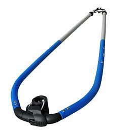 A boom, in the context of windsurfing, is a piece of equipment that attaches to the mast, providing structural support for the sail. It completely encircles the sail, and is designed to be gripped, allowing the sailor to control the sail for normal sailing, and also for almost any type of maneuver (such as gybing, tacking, and waterstarting). Early pre RAF/Cambered booms (often called a "wishbone boom" due to their symmetrical shape) were tied on to the mast using rope, but newer booms use a clamp mechanism for attachment.