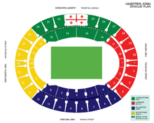 Boris Paichadze Dinamo Arena,[1] formerly known as Boris Paichadze National Stadium, is a stadium in Tbilisi, Georgia, and the home stadium of Dinamo Tbilisi, Georgia national rugby union team and Georgia national football team. With a capacity of 54,549, the stadium is the largest in Georgia. Built in 1976 by the Georgian architect Gia Kurdiani, the Dinamo Arena was named Vladimir Ilyich Lenin Dinamo Stadium after Russian Communist leader but later, in 1995 was renamed to Boris Paichadze National Stadium after the famous Georgian football player Boris Paichadze. Prior to the construction of Boris Paichadze Dinamo Arena, the home stadium of Dinamo Tbilisi was the Central Stadium with an approximate capacity of 35,000 spectators. The demand for a much bigger stadium was increased with the successful performance of Dinamo Tbilisi in the mid 1970s. After the inauguration of the stadium, it became the third-largest in the Soviet Union, with a capacity of 74,354 spectators.
