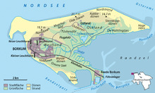 Borkum (Low German: Borkum, Börkum) is an island and a municipality in the Leer District in Lower Saxony, northwestern Germany. It is situated east of Rottumeroog and west of Juist.