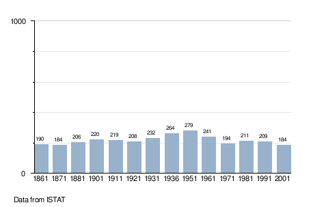 - ^ All demographics and other statistics: National Institute of Statistics (Italy) (Istat).