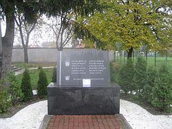 During the 1996–98 United Nations administration established pursuant to the Erdut Agreement to restore the area to Croatian control, three Croatian non-governmental organisations erected a memorial on public property at the entrance to Borovo Selo, but the site was quickly vandalised. A new monument was erected in the centre of the village in 2002, but this was also vandalised soon after completion. A new plaque bearing the names of the 12 Croatian policemen killed in the incident was added to the monument in 2012,[37] but was also subject to vandalism.[38] Although the vandalism was condemned by local Serb politicians, they complained that the memorial was offensive to the Serb minority and imposed guilt on the entire community because it branded Serb forces at Borovo Selo in 1991 as "Serb terrorists".[39]