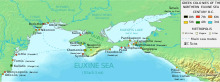 ![]() Map showing the early growth of the Bosporan Kingdom, before its annexation by Mithridates VI of Pontus. | |||||||||||