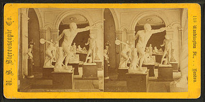 Many of the Trustees at the Boston Athenæum participated in the movement to create a separate museum in Boston. In the years 1872–1876, Boston's Museum of Fine Arts exhibited in the Athenæum's gallery space while waiting for construction of its building to be complete. There would be no more annual exhibitions; shelves were installed and the library spread to the first and third floors.