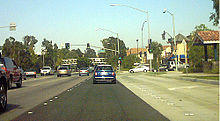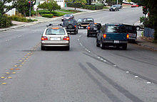 Today, there are more than 25 million Botts' dots in use in California,[2] though they have started falling out of favor. In 2017, Caltrans announced that it would stop using Botts' dots as the sole indicator of lane division, due to cost and worker safety, and in order to make roadways more compatible with self-driving cars. Reflective lane markings will be wider and thicker, providing some of the tactile feedback the Botts' dots provided.[5] In California, highway lanes may be marked either solely by Botts' dots, or dots placed over painted lines. Four dots are used for broken lines on freeways, and broken lines on surface streets may use only three dots. Reflective pavement markers are placed at regular intervals between Botts' dots to increase the visibility of lane markings at night. In the Las Vegas area of southern Nevada, roads with multiple lanes use four pavement markers for each broken white line, a reflective marker followed by three Botts' dots.