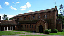 As Bournville was founded by Quakers, a meeting house was built. Being intended also to serve other Christian denominations, it was equipped with an organ, which would not normally be expected in a Quaker meeting house in Britain. The Bournville Friends Meeting House is located on Linden Road, and features a bust of George Cadbury by Francis Wood, installed in 1924.[16] The building, designed by William Alexander Harvey, was constructed in 1905.[17] As a part of this Quaker tradition, Bournville is a dry town with no alcohol permitted to be sold within the historic estate boundaries.[18]