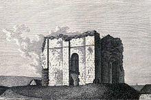 Bowes Castle was built within the ruins of the Roman fort of Lavatrae.[1] The route was one of the few upland passes to link England and Scotland and had remained strategically important during the medieval period.[2] The castle site lay within the Honour of Richmond, a grouping of lands traditionally owned by the Counts of Brittany during the early medieval period, but the land itself was a demesne estate, owned by the Crown.[3]