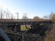Bowling railway station opened in 1850 when the North Clyde line ran via Dumbarton to Balloch. In 1858 the line was extended to progress to Glasgow to the east, and Helensburgh to the west. Between 1896 and 1951, the village was also served by a second station, on Caledonian Railway's Lanarkshire and Dunbartonshire Railway line.[13] Its former trackbed now forms a footpath and cycleway through the village.