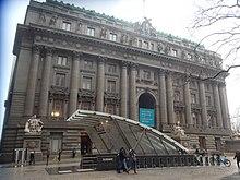 - 2 Broadway, a Modernist glass wall that replaced the distinguished Produce Exchange Building (1881–1884, George B. Post), as an "acceptable sacrifice"[82] intended to spur financial district rebuilding[81]:13