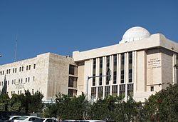 In 1948 the Ruzhiner synagogue in the Old City of Jerusalem, Tiferes Yisroel (also called the Nissan Beck Synagogue), which was completed by the Sadigura Rebbe, Rabbi Avrohom Yaakov Friedman, in 1872,[23] was destroyed by the Arab Legion during the 1948 Israel War of Independence. On his trip to Israel in 1953, the Boyaner Rebbe of New York laid the foundations for a new Ruzhiner Torah center, also to be called Tiferes Yisroel, in the New City of Jerusalem. In 1957 the Ruzhiner yeshiva, called Mesivta Tiferes Yisroel, was inaugurated with the support of all of the Rebbes of the Ruzhiner dynasty.[24] A large synagogue was built adjacent to it, also bearing the name Tiferes Yisroel; the current Boyaner Rebbe, Rabbi Nachum Dov Brayer, leads his Hasidut from here. The design of the synagogue, located on the western end of Malkhei Yisrael Street close to the Central Bus Station, includes a large white dome, reminiscent of the domed Tiferes Yisrael Synagogue that was destroyed in the Old City.