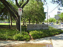 Karl Young Park, a park operated by the City of Houston, is located in the community.[37] It includes three full court basketball courts, three half court basketball courts, a 60-foot (18 m) baseball field, a full court tennis court, a trail system, two playgrounds, and a picnic pavilion.[38] The park is slightly less than 5 acres (2.0 ha) in size. It was named after Karl Young, a Houstonian who was killed when an oil field exploded. In the 1990s a woman named Judy Siverson, a community service volunteer in Houston City Council District C, and her neighbors raised $300,000 to improve Young Park.[39]