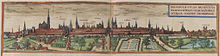 During the Middle Ages, Brunswick was an important center of trade, one of the economic and political centers in Northern Europe and a member of the Hanseatic League from the 13th century to the middle of the 17th century.[9] By the year 1600, Brunswick was the seventh largest city in Germany.[10] Although formally one of the residences of the rulers of the Duchy of Brunswick-Lüneburg, a constituent state of the Holy Roman Empire, Brunswick was de facto ruled independently by a powerful class of patricians and the guilds throughout much of the Late Middle Ages and the Early modern period. Because of the growing power of Brunswick's burghers, the Princes of Brunswick-Wolfenbüttel, who ruled over one of the subdivisions of Brunswick-Lüneburg, finally moved their Residenz out of the city and to the nearby town of Wolfenbüttel in 1432.[11] The Princes of Brunswick-Wolfenbüttel didn't regain control over the city until the late 17th century, when Rudolph Augustus, Duke of Brunswick-Lüneburg, took the city by siege.[12] In the 18th century Brunswick was not only a political, but also a cultural centre. Influenced by the philosophy of the Enlightenment, dukes like Anthony Ulrich and Charles I became patrons of the arts and sciences. In 1745 Charles I founded the Collegium Carolinum, predecessor of the Brunswick University of a Technology, and in 1753 he moved the ducal residence back to Brunswick. With this he attracted poets and thinkers such as Lessing, Leisewitz, and Jakob Mauvillon to his court and the city.[13] Emilia Galotti by Lessing and Goethe's Faust were performed for the first time in Brunswick.[14]