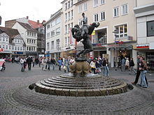 - The Hagenmarkt ("Hagen market"), with the 13th-century Katharinenkirche (Church of Saint Catherine) and the Heinrichsbrunnen ("Henry the Lion's Fountain") from 1874.